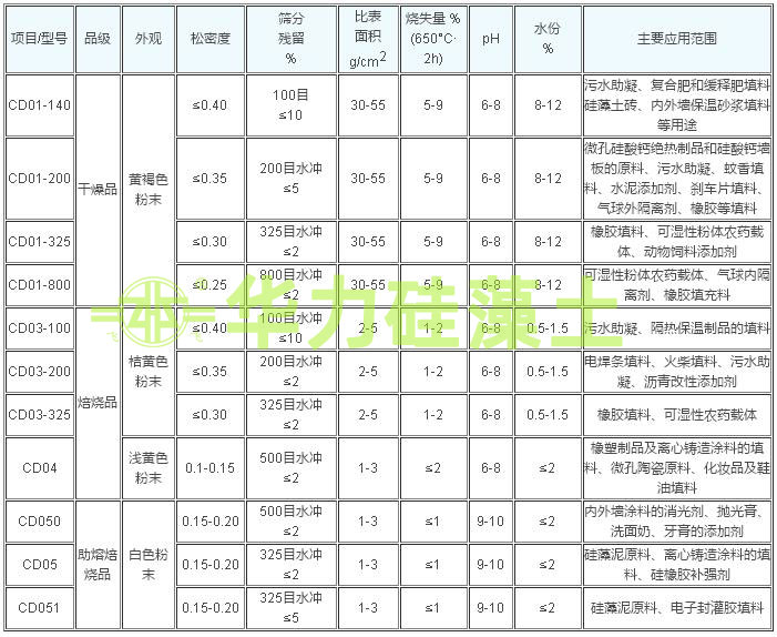 精制硅藻土載體精制硅藻土載體自然級(jí)/焙燒級(jí)/助熔焙燒級(jí) 本產(chǎn)品是以天然硅藻土為原料,經(jīng)過(guò)選礦、干燥、破碎、焙燒/助熔焙燒、分級(jí)等工藝制成的精制硅藻土載體。 精制硅藻土載體 (1).精制硅藻土催化劑載體---在硅藻土眾多用途中,很重要的是一種是作催化劑載體。它廣泛地就用于氧化、還原、加氫、水合、聚合、轉(zhuǎn)化、合成、烷基化、脫硫等各類(lèi)反應(yīng)中。本廠選用當(dāng)?shù)貎?yōu)質(zhì)硅藻土經(jīng)膨化、干燥、保護(hù)性粉碎、分級(jí)去雜等工藝制得的精制硅藻土,具有硅藻殼體含量高,堆密度小,雜質(zhì)少和化學(xué)純度高等優(yōu)點(diǎn),可直接用來(lái)生產(chǎn)催化劑,從而省去繁雜酸洗處理工藝。經(jīng)上海石油化工研究院和南化集團(tuán)研究院使用證實(shí):本廠生產(chǎn)的CD02精制硅藻土是一種優(yōu)質(zhì)的硫酸釩催化劑和石油磷酸催化劑的載體。 (2).硅藻土農(nóng)藥殺蟲(chóng)劑載體---硅藻土是可濕性粉劑、旱地除草劑、水田除草劑、六麥隆、一偏凈等生態(tài)農(nóng)藥的載體。CD01、CD04、CD05三種型號(hào)硅藻土適用于上述工業(yè)需求。 (3).硅藻土肥料載體---硅藻土是果木、蔬菜、花草各種農(nóng)作物的肥料載體。CD01型號(hào)硅藻土較適宜。 (4).硅藻土生化載體---硅藻土是污水生化處理工程中微生物良好的載體。CD03型號(hào)硅藻土較適宜。 產(chǎn)品指標(biāo)產(chǎn)品指標(biāo)精制硅藻土載體產(chǎn)品物理指標(biāo): 精制硅藻土載體產(chǎn)品化學(xué)指標(biāo): 包裝參數(shù)包裝參數(shù)